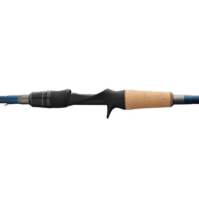 Den eleganta djupblå finishen kombineras med sofistikerade metalldetaljer och mattsvarta komponenter för en exklusiv look. Det ergonomiska AAA-korkhandtaget ger optimal komfort och grepp, medan Fuji® SiC-spöringarna i rostfritt stål minimerar friktion och lintrassel.