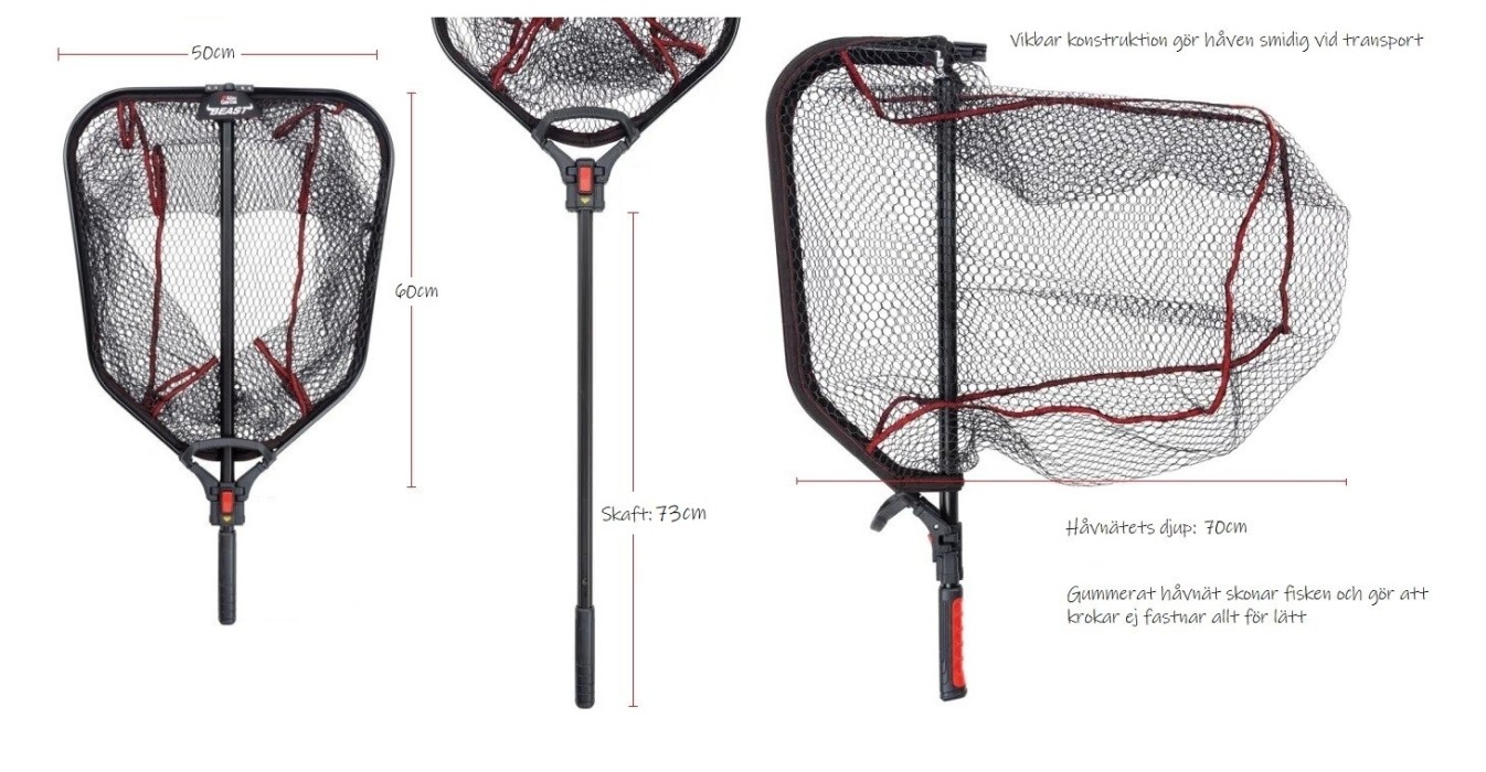 Abu Garcia Beast Net 60x50 cm är en vikbar håv i utmärkt kvalite, dess specialdesignade handtag gör det mycket enkelt att fälla ut håven. Utrustad med gummerat håvnät, dels för att vara skonsamt mot fisken men gör även att krokar ej fastnar i första taget.