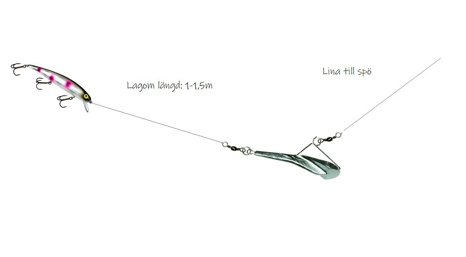 - Fäst ditt bete (tex wobbler eller långdrag) i lekandet med en lagom lång lina.