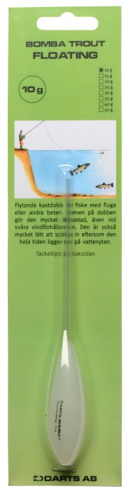 Frostad vit flytande kastdobb som är perfekt för fiske med fluga och ditt haspel eller spinnspö.