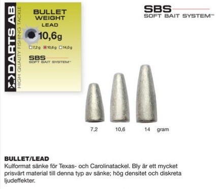 Darts kulformat sänke tillverkat i bly, tänkt till fisket med Texas och Carolinariggar, hög densitet och diskreta ljudeffekter.