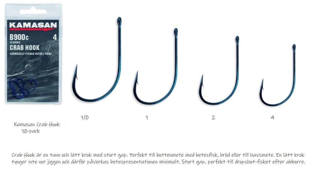 Kamasan B900c - Crab Hook är en krok från Kamasan som är mycket lätt, villket ger ditt bete ett mera levande intryck.