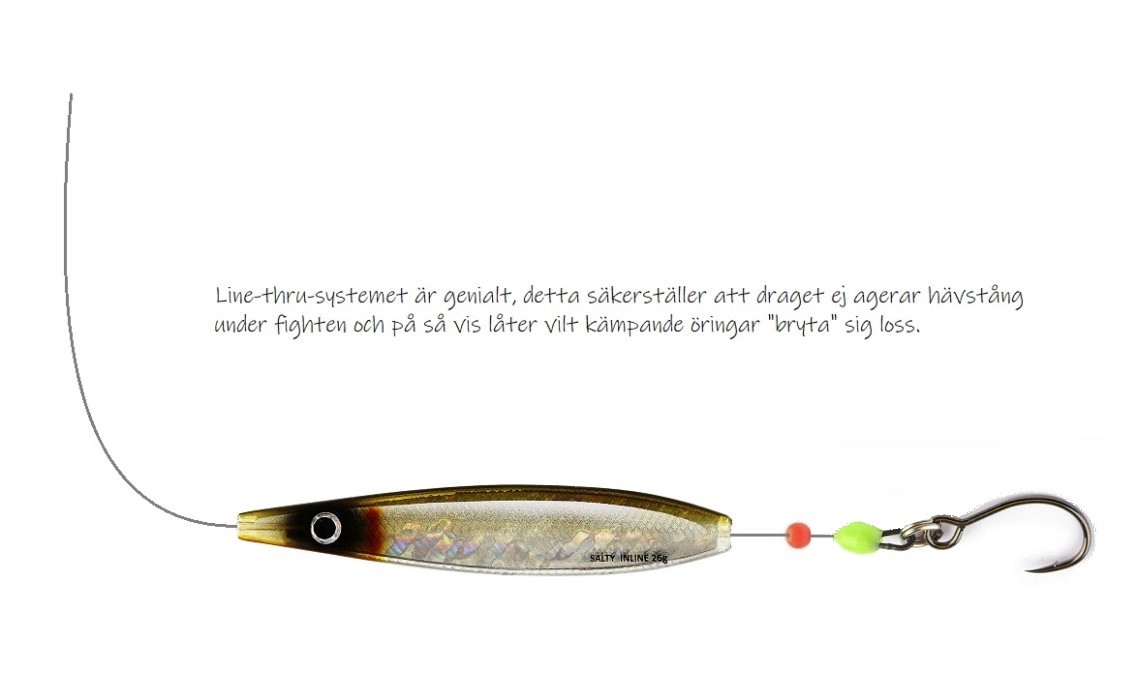 Färdigt tackel för fiske med inline-beten och genomlöpande öringsdrag, tacklet är färdigmonterat och redo att användas direkt ur förpackningen, perfekt för dig som vill ha ett pålitligt och effektivt alternativ för fiske med genomlöpande drag.