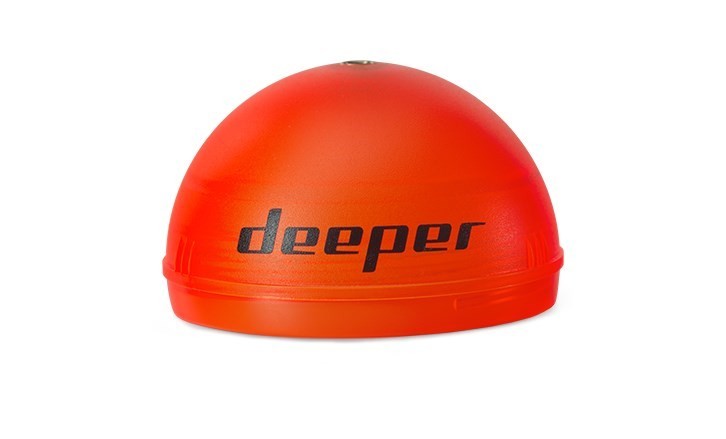 Bollen med höljet för nattfiske gör att ett starkt blinkande LED-ljus kan passera genom det orange höljet på bollen, så att det kan ses tydligt på avstånd och i mörker, vilket gör det omöjligt att tappa Deeper-enheten ur sikte. Deepers hölje för nattfiske är ovärdelig även dagar med dålig sikt, tex vid regnväder eller dimma. Med det ljusa orange höljet och det lysande skenet garanteras att Deeper-enheten är väl synlig i alla väderförhållanden och när som helst under dagen.