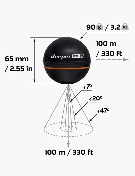 Deeper PRO+2 hjälper dig att lösa mysteriet under vattenytan! Med 3 strålfrekvenser, klar och tydliga bild samt förbättrad GPS-prestanda förvandlar du tillsammans med appen "Fish Deeper" enkelt din smartphone till ett kraftfullt ekolod! Låt fiskeäventyret och det strategiska pusslet om "var och hur" börja!