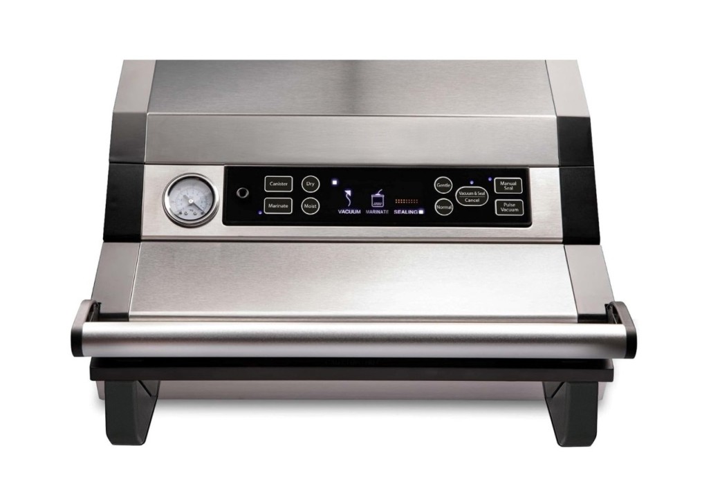 Elegant design: Med sin stilrena platinayta blir denna vakuumförpackare inte bara ett praktiskt verktyg i köket utan också en snygg detalj på köksbänken.