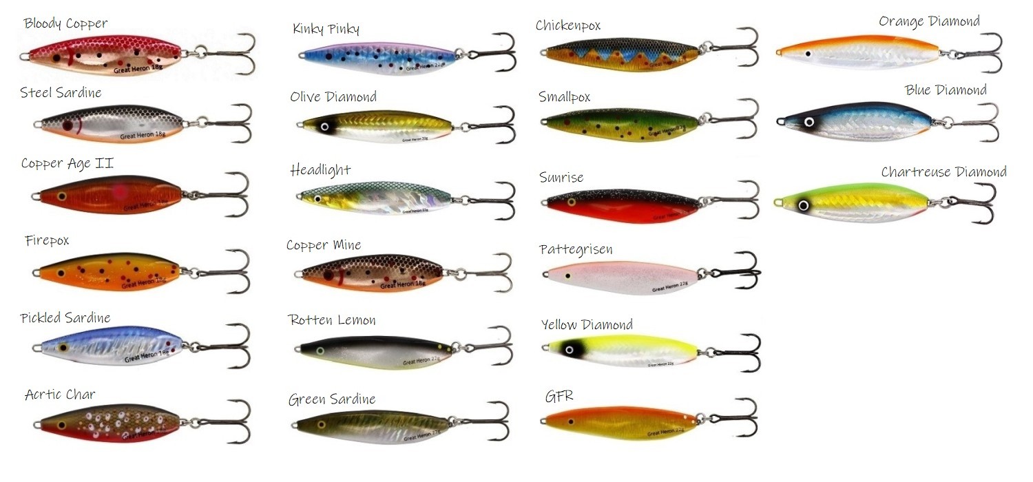 Great Heron skapades och testfiskades i samarbete med erfarna sportfiskare från både Finland och Sverige. Redan från början har Great Heron visat sig vara ett mycket effektivt bete. Great Heron tål ett brett fartregister, både snabbt eller långsamt. Oavsett hastighet simmar den mycket livlig och tilltalande.