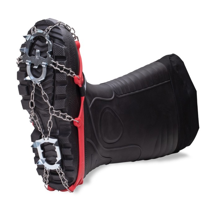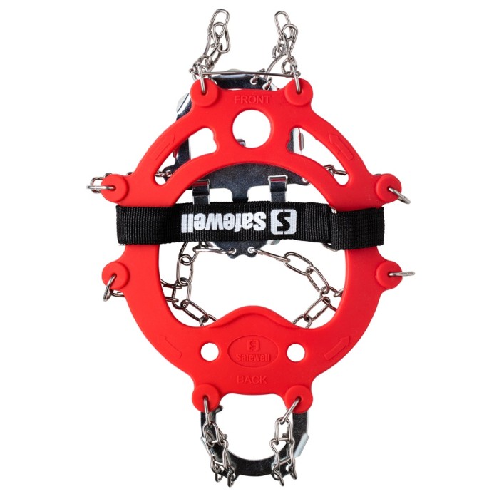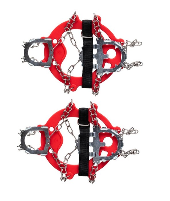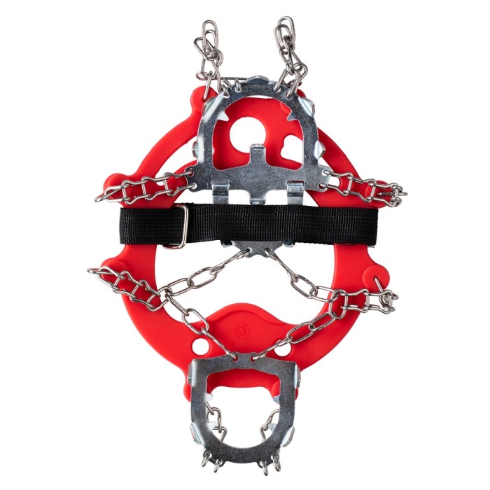 Kraftiga och solida broddar för perfekt grepp på isen eller glatta stigar. Kättingen och piggarna är tillverkade i rostfritt stål.