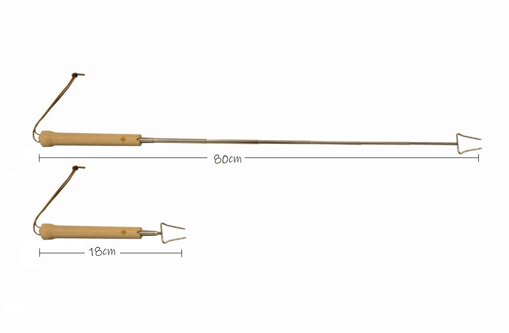 Teleskopisk grillpinne från Stabilotherm med handtag i trä, gaffel i rostfritt stål.