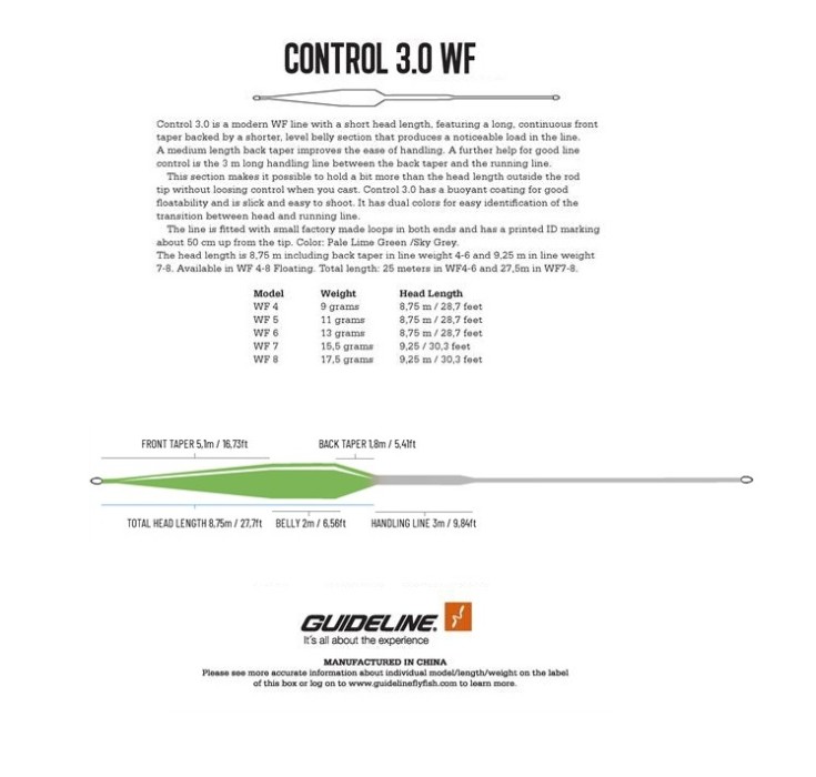 Control 3.0 är en lättkastad fluglina med kort klump perfekt för nybörjaren, för dig som söker en speciallina för fiske på kort till medelavstånd eller när du har lite utrymme för bakkast. Linan är framtagen för nybörjaren och den medelgoda kastaren, med en design som genererar hög linhastighet och en god kontakt med spöklingan.