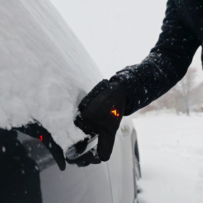Med värmeslingor ovanpå varje finger och på handryggen, garanteras en behaglig värme i alla väderförhållanden. Utrustad med en praktisk ficka på handryggen som erbjuder en bekväm förvaring för "luvan" när den inte används, ovanpå luvans ficka en speciell ficka för medföljande powerbank. Det betyder att du inte bara håller dina händer varma utan också har möjlighet att ladda dina enheter närhelst du behöver det.