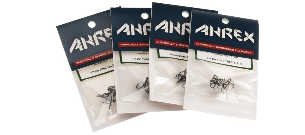 Ahrex HR450 är en trekrok för tubflugor med kort skaft, brett krokgap och med ett smalt kroköga, vilket gör det enkelt att trä in kroken i dina tubflugor.