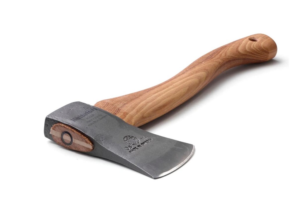 Handtaget är gjort av oljat hickoryträ, känt för sin styrka och flexibilitet. Det ergonomiska greppet ger utmärkt kontroll och komfort vid användning. Med sin kompakta storlek och låga vikt är Friluftsyxan lätt att bära med sig i ryggsäcken, vilket gör den idealisk för vandring, camping och andra utomhusaktiviteter.