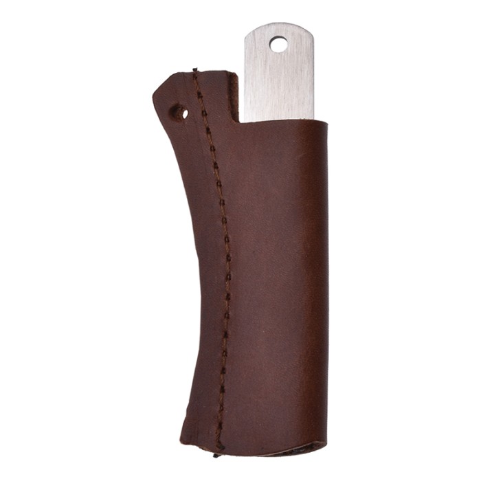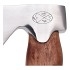 Karesuandos minsta yxa i ett brunt utförande passar utmärkt för jägaren att bära med sig. Jaktyxan levereras tillsammans med ett diamantbryne och ett hölster av koskinn. Observera att yxan inte är designad för att hugga ved med. Rostfritt stål, älgben, renhorn, Masurbjörk och nötläder är råvarorna vi använt för att tillverka denna vackra yxa. Hölstret är konstruerat så att man bara behöver släppa ner yxan i hölstret som man fäster i bältet som en knivslida.