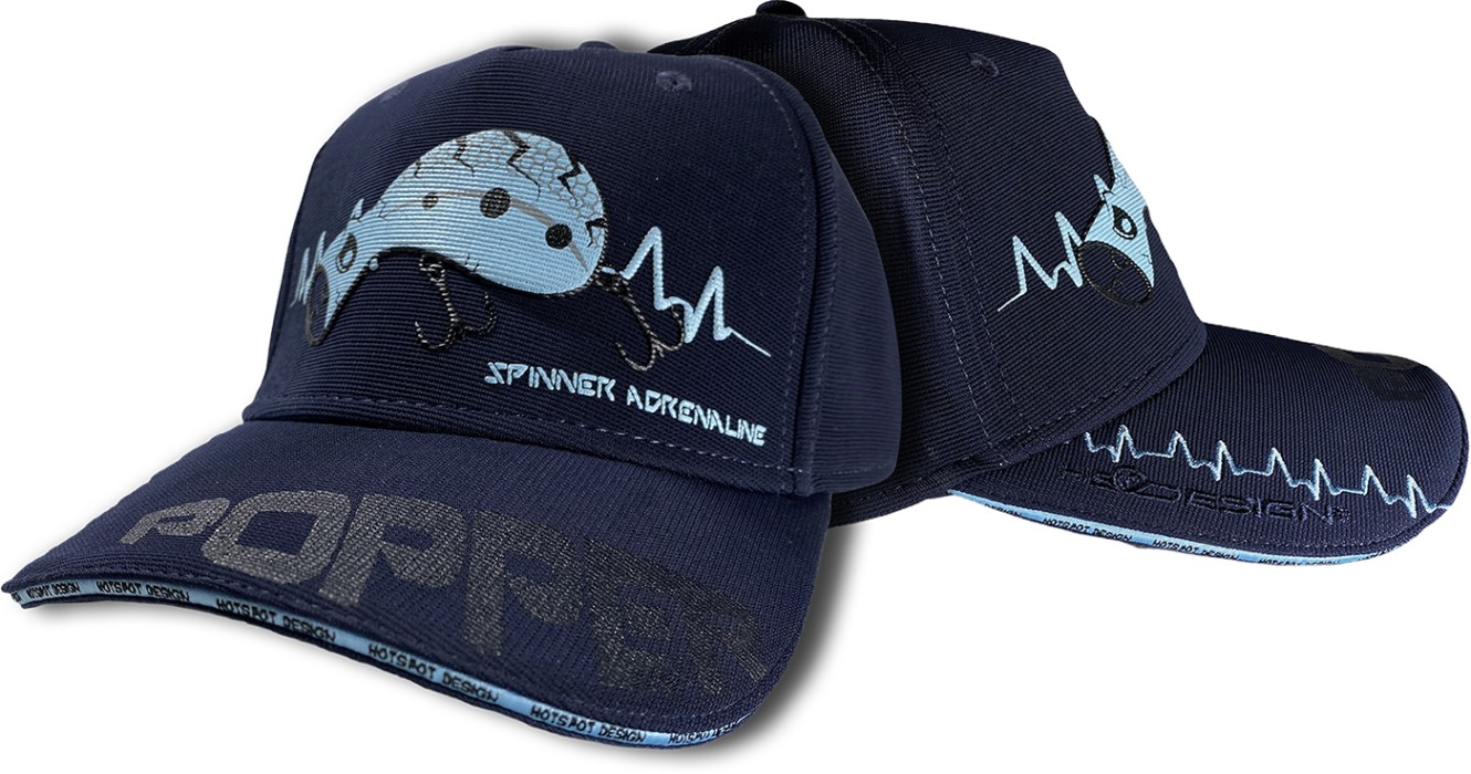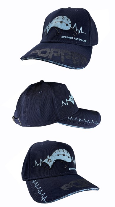 Kepsens framsida har ett tydligt präglat tryck med en popper, med "adrenalin"-linjer tryckta på vardera sida. Skärmen har texten "Popper" tryckt på ovansidan och längs med framsidan löper en kontrastfärg i ljusblått.