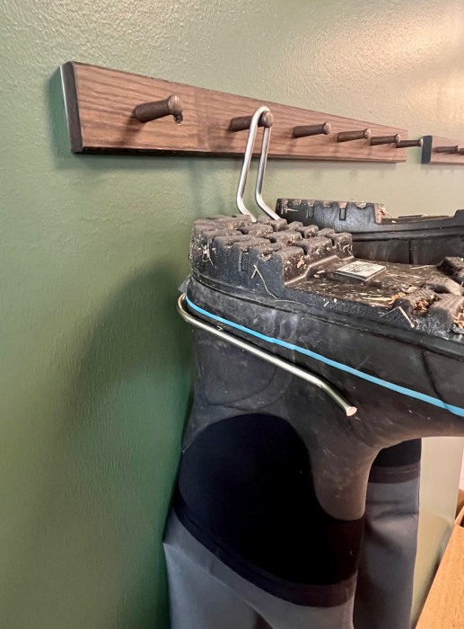 Kinetic Fresh&Dry Hanger är en hängare för dina vadarbyxor. Genialisk torkhänkare för stövelvadare, häng upp hängaren och sätt stövlarna med hälarna i hållaren. Hjälper luft att cirkulera och torkar vadarna eller stövlarna på ett bra sätt