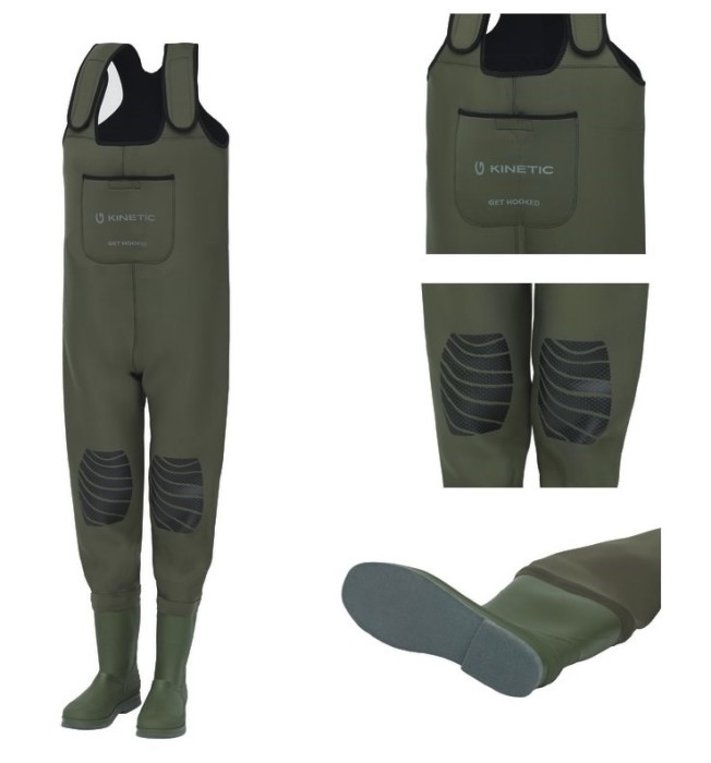 Kinetic NeoGaiter vadarbyxor av neopren värmer gott när vattentempen gått ner. Neopren i 4mm ger perfekt flexibilitet och rörlighet. Alla sömmar är tejpade, limmade och syda för att skydda mot läckage och leverera långvarig prestanda. Fina och mjuka stövlar i pvc med filtsulor för säkert fäste på glatta stenbäddar och stenar. Justerbara axelremmar i neopren hjälper till att ge en bekväm, anpassad passform. Har även en praktisk bröstficka.