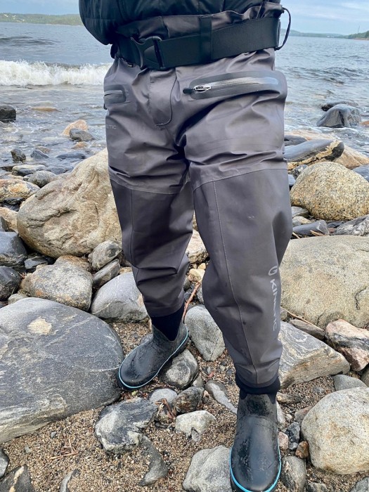 Tejpade, limmade och sydda sömmar hindrar vatten från att sippra in. Förstärkta knän och vadarbältet ger en bra passform. Dessutom handgjorda gummistövlar med ett otroligt bra grepp på hala stenar.