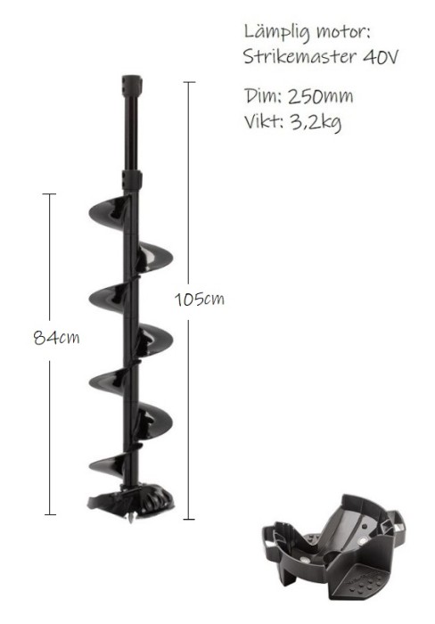 Passar till elektrisk eller bensindriven motor. Spiralen är perfekt anpassad för Strikemaster Litium 40V isborrsmotor.