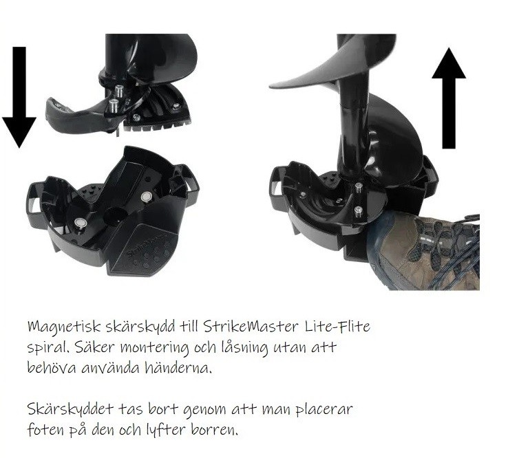 Genom att kombinera stål och syntetiskt ArcTec-material har Strikemaster skapat en superlätt och hållbar isborr. Det nya ArcTec spiralsystemet gör det enkelt att ändra mängden spiralet beroende på istjockleken.