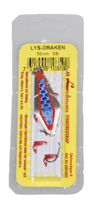 Klassiskt pimpelblänke med formen av en drake, därav namnet. Har i alla tider lockat röding, öring, sik, abborre och regnbåge.