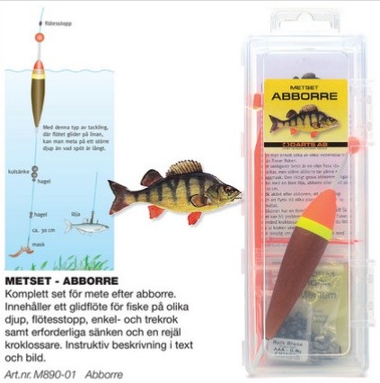 Färdigt kit med allt du behöver för att komma igång med metet efter abborre. Setet levereras i en praktisk plastbox som håller utrustningen organiserad och skyddad. Det är särskilt användbart vid mete med mask eller betesfisk och passar utmärkt för fiske i både stilla och strömmande vatten