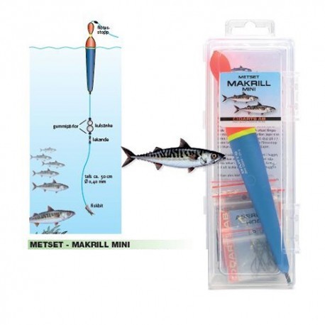 Darts färdiga kit med allt du behöver för att komma igång med flötmete längs kusten efter makrill. Komplett meteset för mete efter makrill, horngädda och andra kustnära fiskar. Setet innehåller alla nödvändiga komponenter för att snabbt och enkelt komma igång med fisket, oavsett om du är nybörjare eller erfaren fiskare.