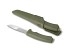 Den skogsgröna färgen på både handtag och knivslida gör att den här modellen smälter in perfekt i terrängen. Ytterligare en utmärkande egenskap är bladets flåslipning, som är perfekt när du behöver arbeta med stor precision. Bladet är tillverkat i svenskt rostfritt stål med en praktisk flåslipning - perfekt på exempelvis jakten. Stålkvaliteten gör att bladet håller skärpan länge, är mycket tåligt mot nötning och har hög täljstyrka. Det militärgröna skaftet har ett behagligt friktionsgrepp och den diskreta slidan i samma färg har en praktisk bältesclip.