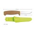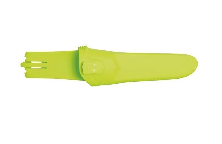 Den ljusa limegröna färgen gör kniven extremt synlig både i och utanför vattnet. Om kniven skulle tappas, är den lätt att hitta igen tack vare sin starka färgkontrast mot de flesta naturliga bakgrunder.