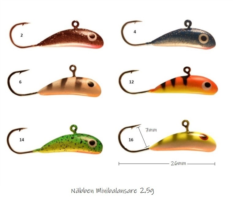 Näbben är en serie små balanspirkar i 2,5g som är något större än en mormyska och lämpar sig ypperligt att fiska som den är tackvare dess vikt.