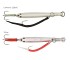 Bananformen gör den skär ut i sidled vid pilkfiske. Den hammrade ytan skickar både ljus och vibrationer.