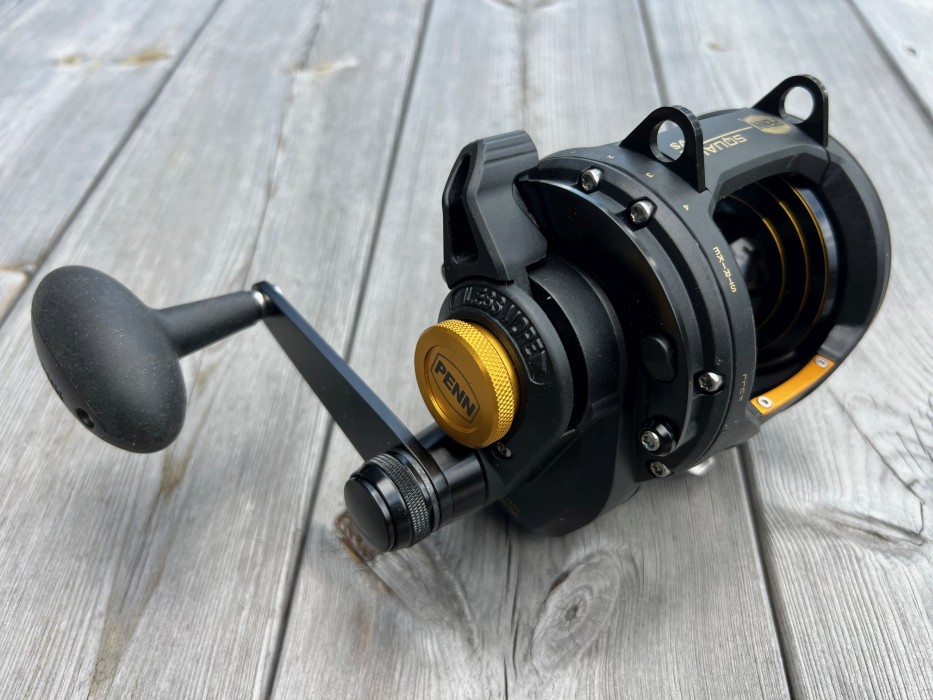 Stor tvåväxlad havsfiskerulle med väl tilltagen linkapacitet.