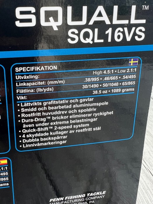 Modellen har rostfria kugghjul och fyra rostfria kullager som ger jämn gång och tillförlitlighet. Den mekaniska spärren motverkar backslag och gör den pålitlig för både rutinerade och erfarna sportfiskare. Penn SQL16VS Squall Lever Drag är ett val för den som söker en lätt men kraftfull rulle för havsfiske med kapacitet att hantera större arter.
