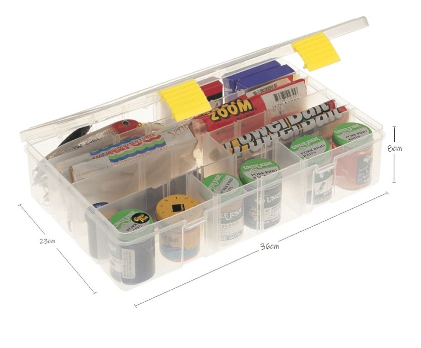 Plano 3730 är storebror till standardlådan Plano 3700 men är 50 % djupare och ger dig därmed fler lagringsmöjligheter just eftersom den är djupare. Använd 3730 för dina stora gäddbeten som swimbaits och crankbaits, eller varför inte som en verktygslåda för reparationer på vattnet.