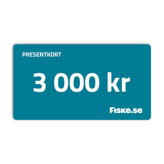 Ett presentkort från Fiske.se är alltid välkommet. Köp presentkort via vår hemsida, vi e-postar sedan ett presentkort (som .pdf-fil som ni kan skriva ut om ni vill) till er med en unik kod som ni kan använda som betalning via hemsidan.