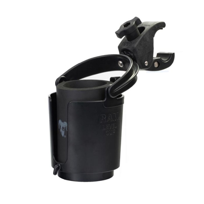 RAM mugghållare med klo består av en liten Tough-Claw och RAM Level Cup Dryckeskopphållaren som har två ledpunkter och gör att din dryck alltid kan stå upprätt och aldrig riskerar att spillas ut.