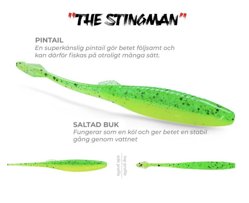 Rapala The Stingman är ett så kallat "pintail-bete" Betets utformning gör det extremt mångsidigt och kan fiskas på en lång rad olika sätt, exempelvis dropshot, vertikalfiske, dartingskallar, Texas- och Carolina-riggar.