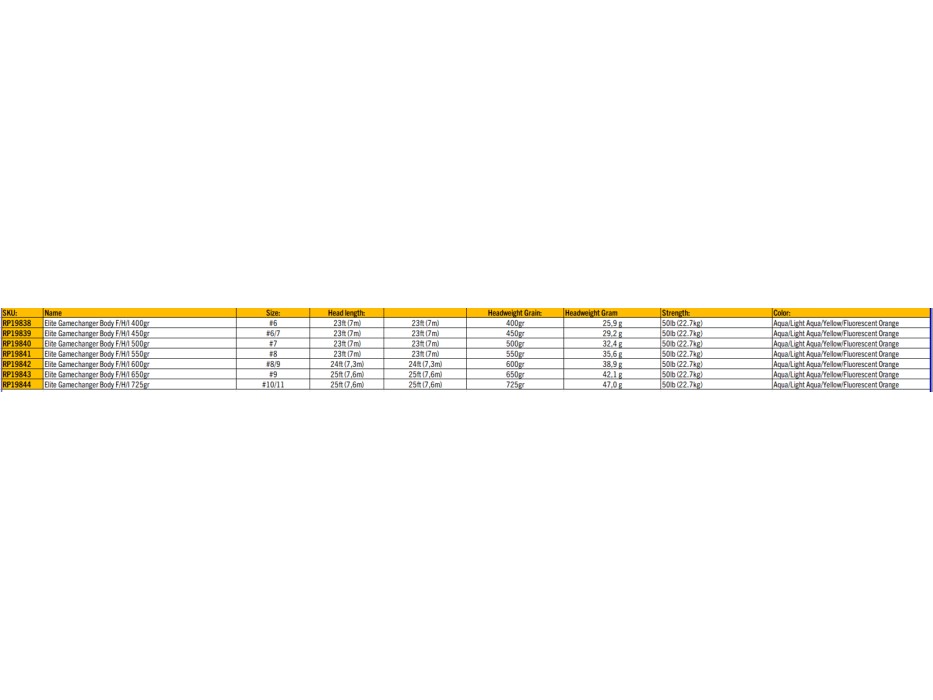 Var och en byggd med SlickCast-teknik och "ultra low stretch ConnectCore Plus" för maximal känslighet och prestanda. Med GameChanger Body ger det stora utbudet av densitetsalternativ sportfiskare total kontroll över fiskedjupet, vilket säkerställer en rakare lina ner till flugan, vilket minskar sänkningen som är typisk för linor med enkel densitet.