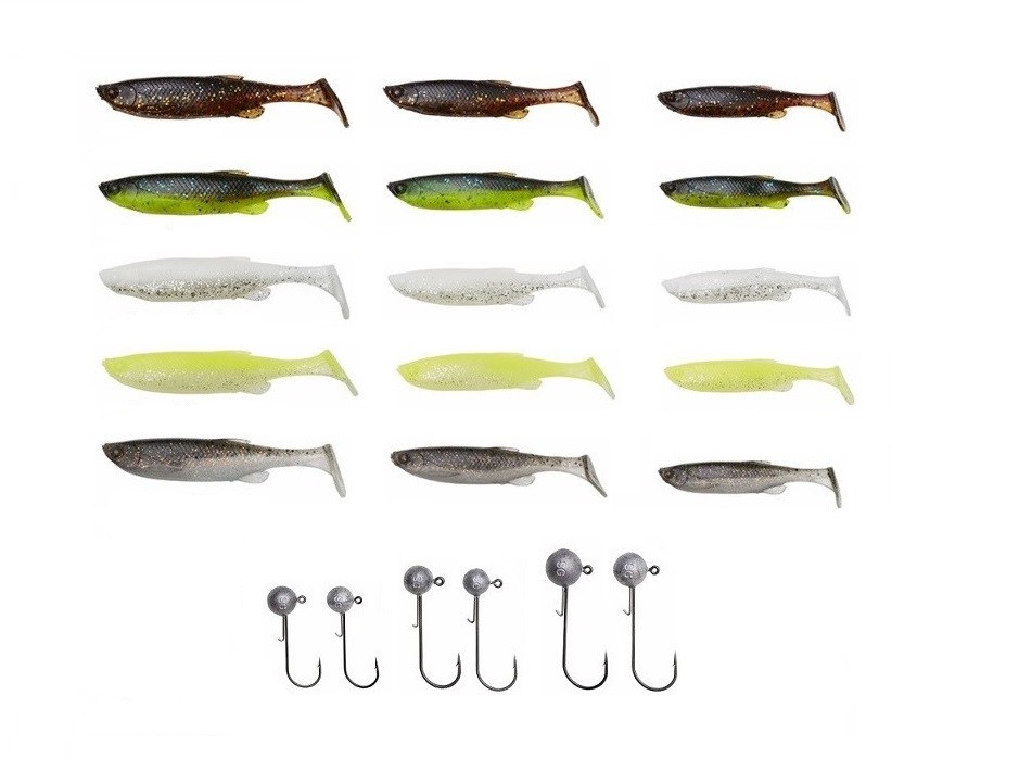 Kit med SavageGear "Fat Minnow T-tail" En jigg av shadmodell som går att fiska på alla möjliga tekniker.