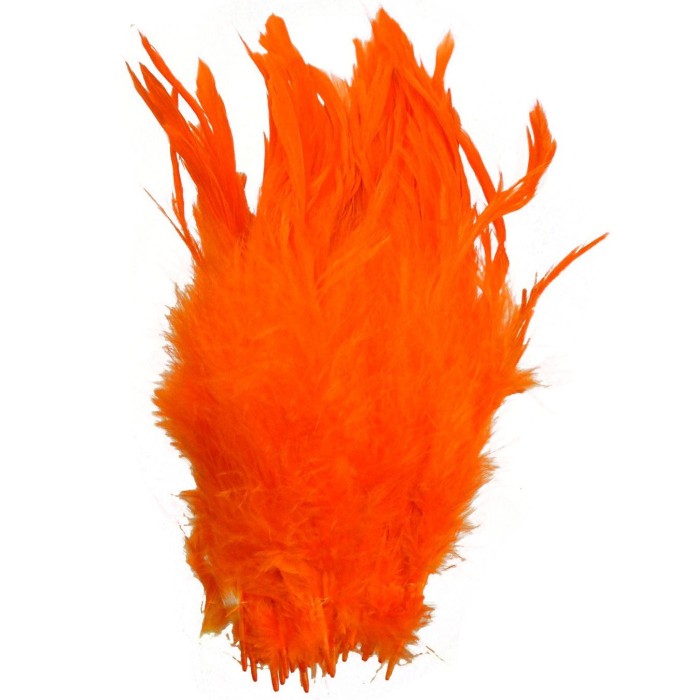De långa och mjuka saddlefjädrarna från tupp har en tunn och mycket smidig hackelstam.