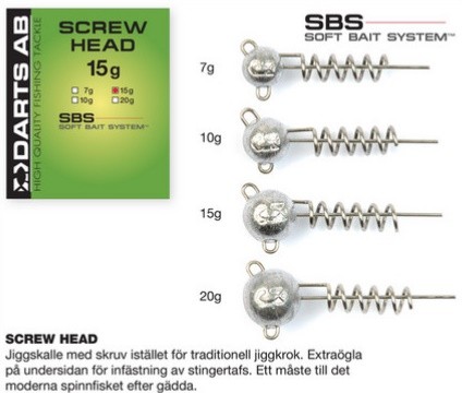Klassisk skruvskalle från Darts till ditt mjukbete, enkel att montera genom att skruva in den som en korkskruv, i öglan undertill fäster du stingertacklet.