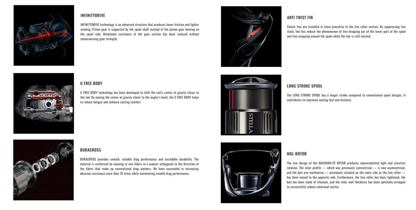 - Propulsion Line Management = Spolens framkant designad för att ge längre kast och föhindrar vindknutar