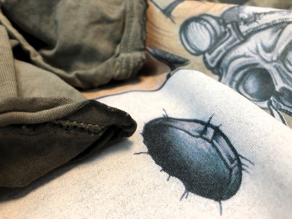 För att uppnå en riktig vintageeffekt har tröjan färgats i en speciell process där färgen tillsätts efter tillverkning, en process som ger plagget ett tvättat och använt utseende med en blekt färg. Målet med denna process är att frambringa en ojämn färg som skapar starka och mindre starka färger, en "använd"-look som ger en avslappnad känsla.