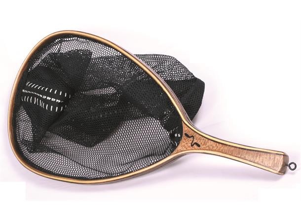 En lite större håv i trä som passar till de flesta fisketillfällen.