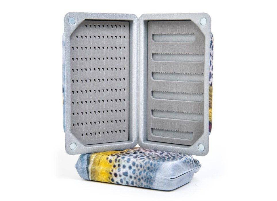 Superlätt flugask från Guideline i foam med ett snyggt motiv på en öring tryckt på ett skyddande tygöverdrag.