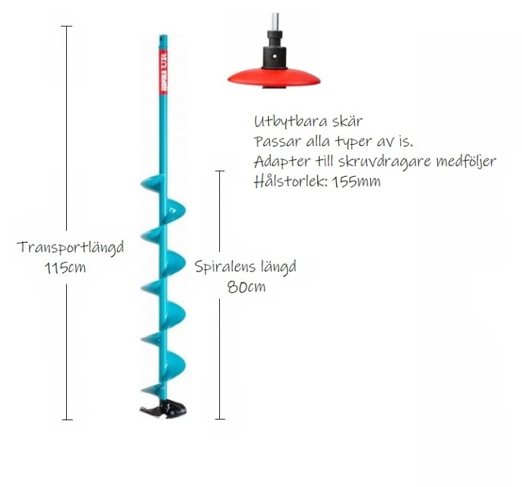 Många fiskares favoritborr, mycket stabil och bra längd på spiral här med adapter för att användas med skruvdragare.