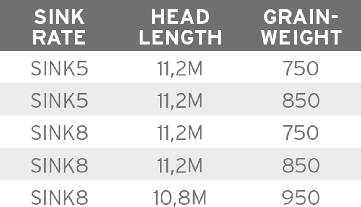 Dom här linorna är de mest snabbsjunkande klumparna på marknaden, med en kraftfull övervändning som tillåter dig att fiska djupt med riktigt stora tuber. Coatingen har en textur som ger minimal friktion mot vattnet och gör dom enkla att lyfta. Riktiga "strykjärn". Finns i sjunk 5 och sjunk 8.