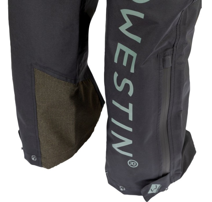 Dragkedjor från knän till anklar i kombination med justerbara benöppningar gör det enkelt att ta på och av byxorna över skorna. Förstärkning med Cordura Kevlar på bensluten för extra hållbarhet.Detta komfortabla och specialiserade regnställ gör att du kan ta dig an vilket väder som helst för att fånga fisk.