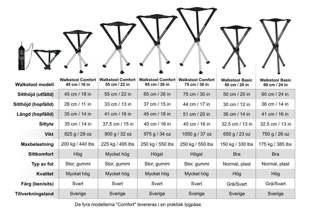 Med en liten och smidig Walkstool bär du alltid med dig en bra sittplats. Finns i 2 olika höjder 50 och 60 cm.' Fodral medföljer ej.