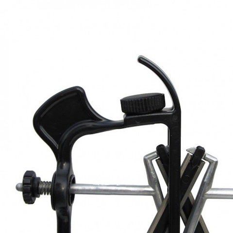 Fungerar för de flesta typer köksknivar och jaktknivar med platt egg. Solid stålramskonstruktion med slitstark pulverlack monterad på en halkfri basplatta i trä med gummiben.